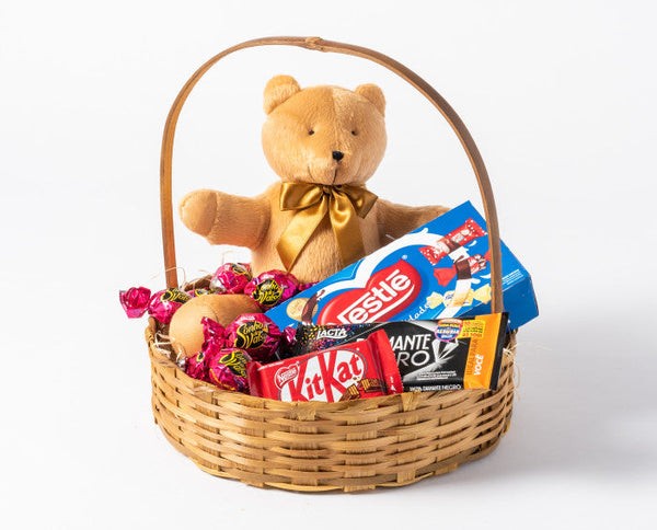 Essa cesta vem com quatro variedades de chocolate, proporcionando momentos saborosos e muito agradáveis. Para deixar a ocasião ainda mais especial, ela também traz um urso de pelúcia com 30 centímetros de altura.